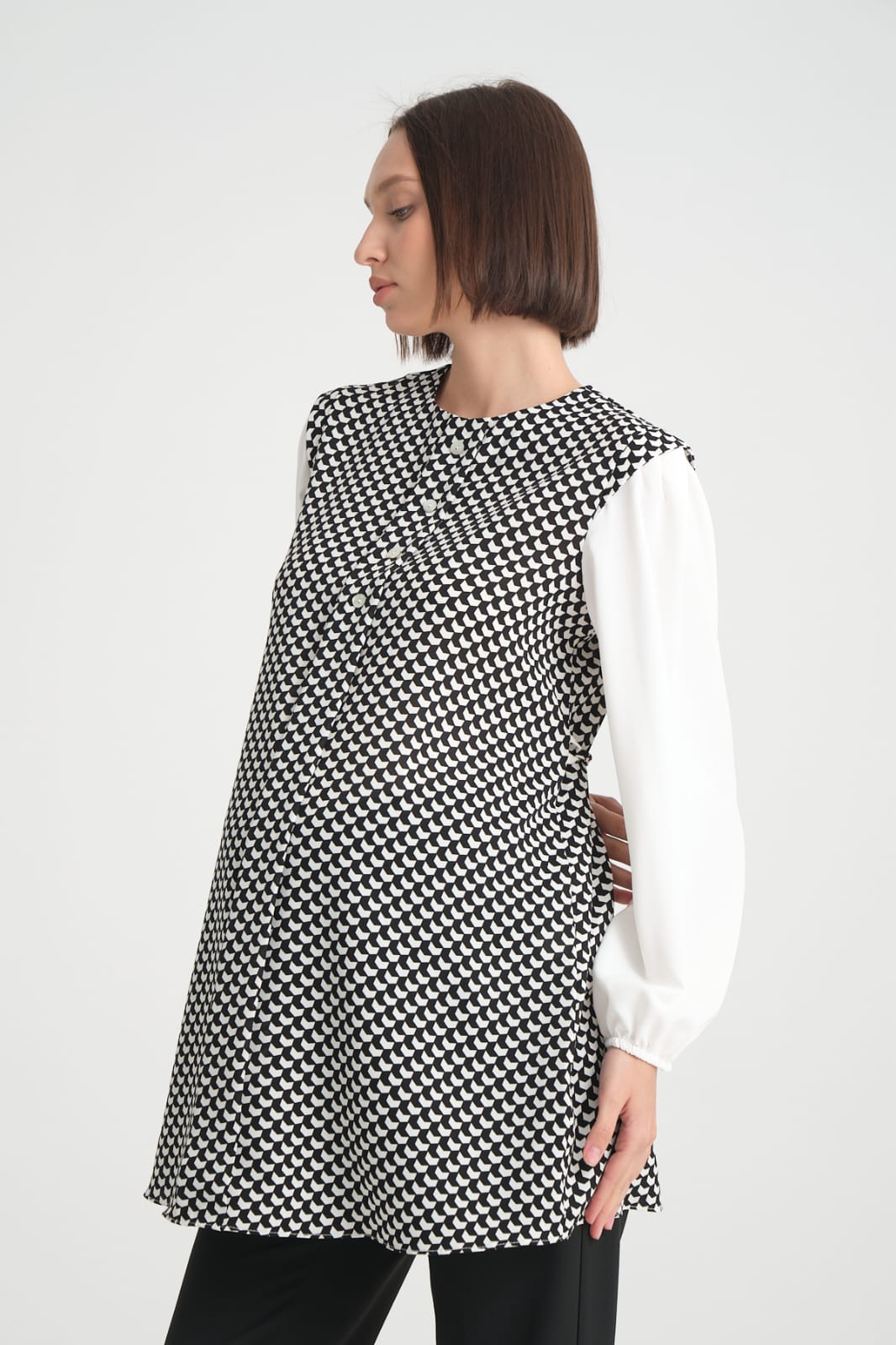 بلوزة حمل لون اسود مع اكمام بيضاء